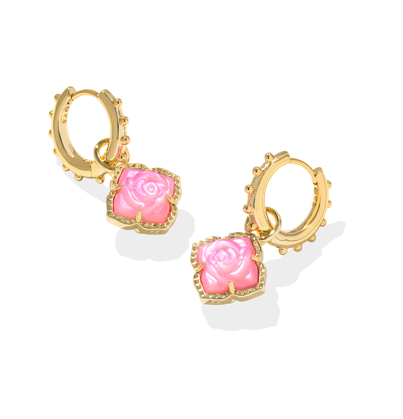 Get two stunning looks in one with the Mallory Rose Gold Huggie Earrings in Blush Ivory Mother of Pearl. Wear them with the sculptural roses for a romantic look or take them off for a more subtle vintage look with beautifully detailed huggie hoops. No matter the style, these earrings are ready to elevate any look with artistic elegance.