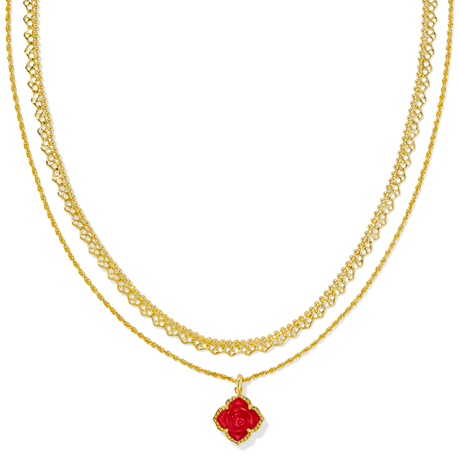 Your next favorite necklace stack is layered up for you with the Mallory Rose Gold Multi Strand Necklace in Red Mother of Pearl. A rose pendant inspired by our signature medallion logo serves as the focal point of this necklace, perfectly paired with a lace-inspired chain, to give your look a subtle touch of elegance and romantic radiance. Styling tip: Keep the sculptural floral vibes going by pairing this necklace with the Mallory Rose Huggie Earrings.