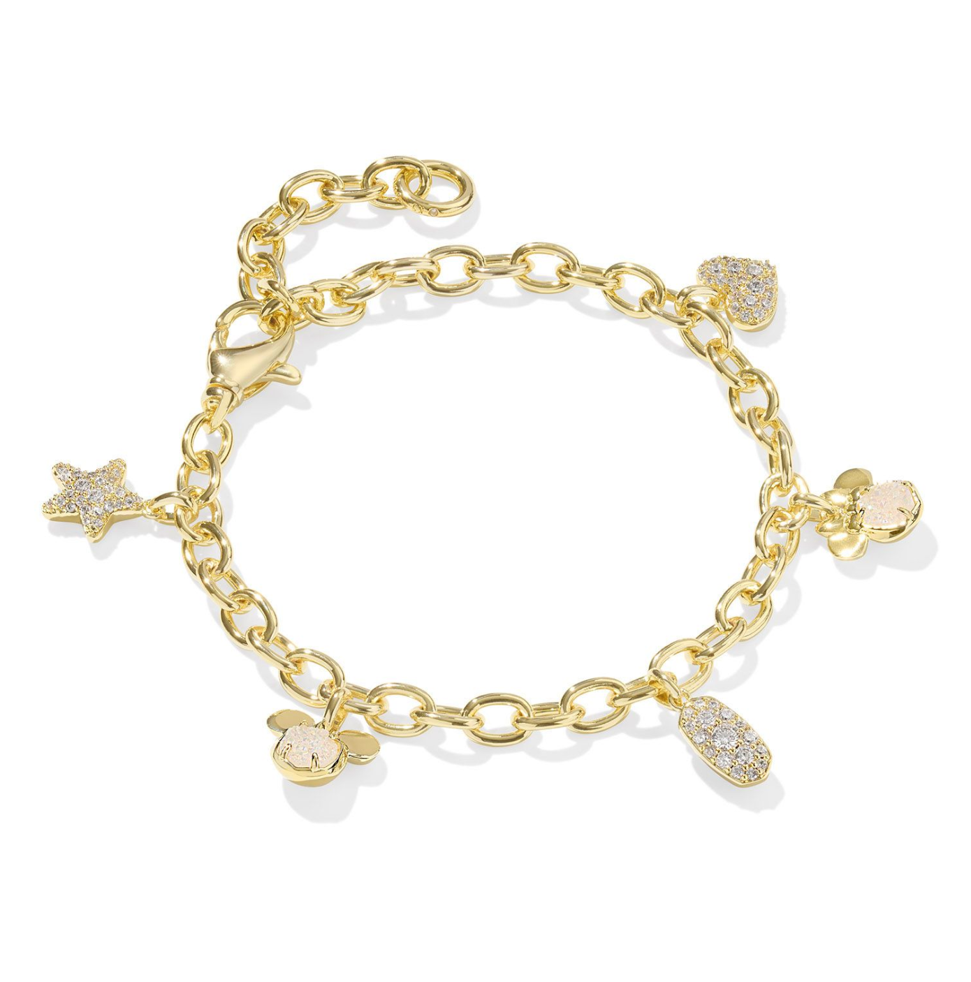 This MICKEY MINNIE CHARM BRACELET GOLD IRIDESCENT WHITE MIX by Kendra Scott is a charming addition to any wardrobe. Made with high-quality materials and featuring iconic Mickey and Minnie charms, this bracelet adds a touch of whimsy and sophistication. Perfect for fans of Disney and fashion alike.