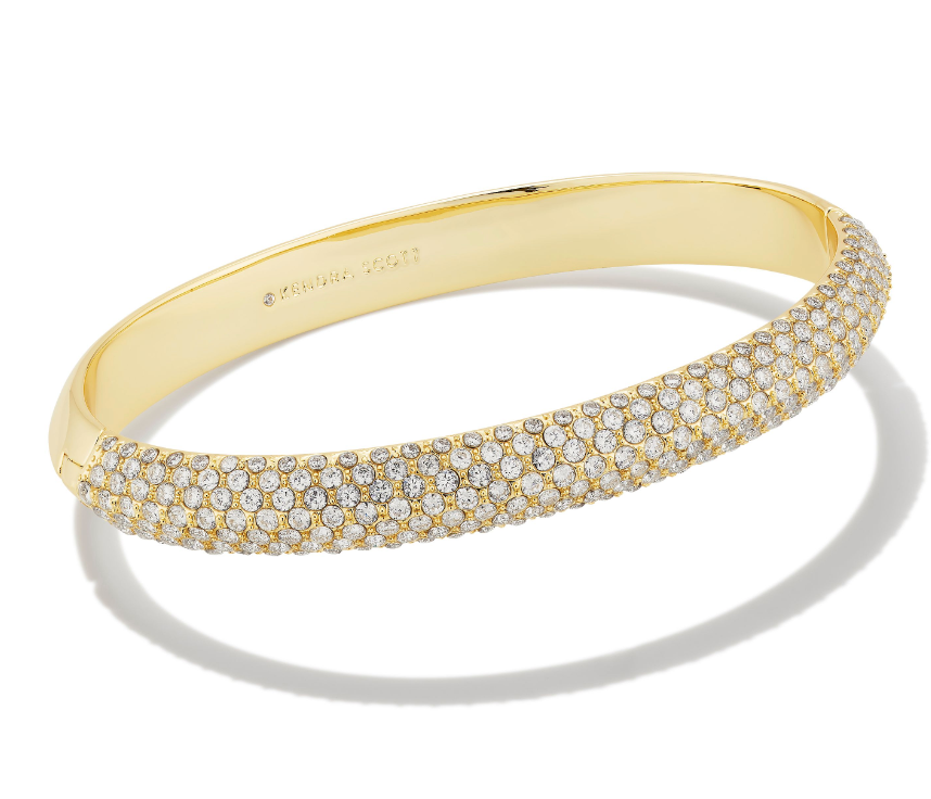 Let your wrist stack really shine when you wear the Mikki Gold Pave Bangle Bracelet in White Crystal. A bold bangle covered in pave crystals, this bracelet will have you sparkling from all angles. Glam as a solo style or the perfect base for a stacked look, you can’t go wrong with this stunner.