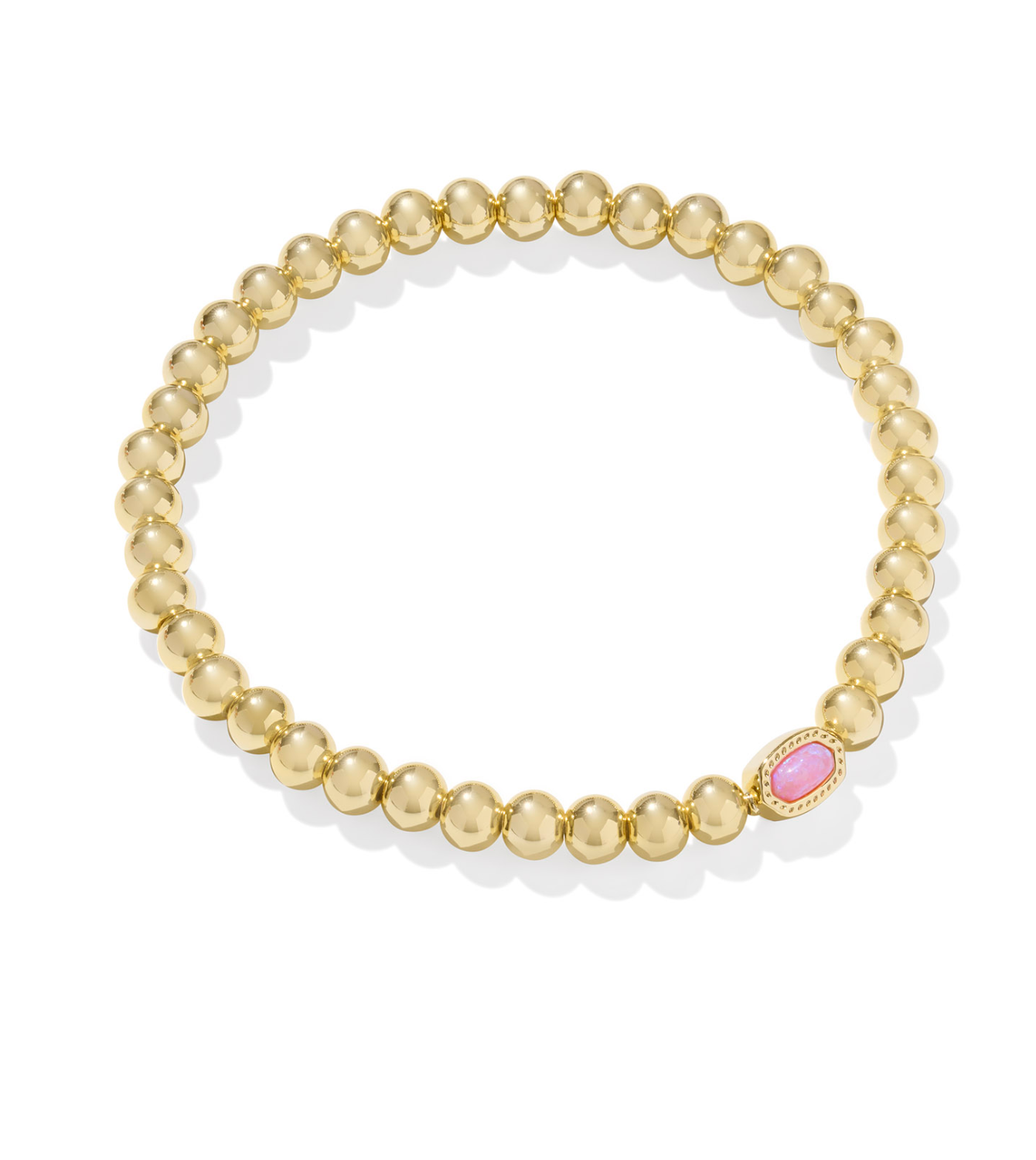 A wrist stack essential, meet the Mini Elaina Gold Stretch Bracelet in Carnation Kyocera Opal. Pairing our dainty mini Elaina framed in classic hoofprint detailing with beads that offer a near-blinding shine, this piece is both chic and playful. Let it speak for itself or stack it with your favorite bracelets, you can’t wear this one wrong.