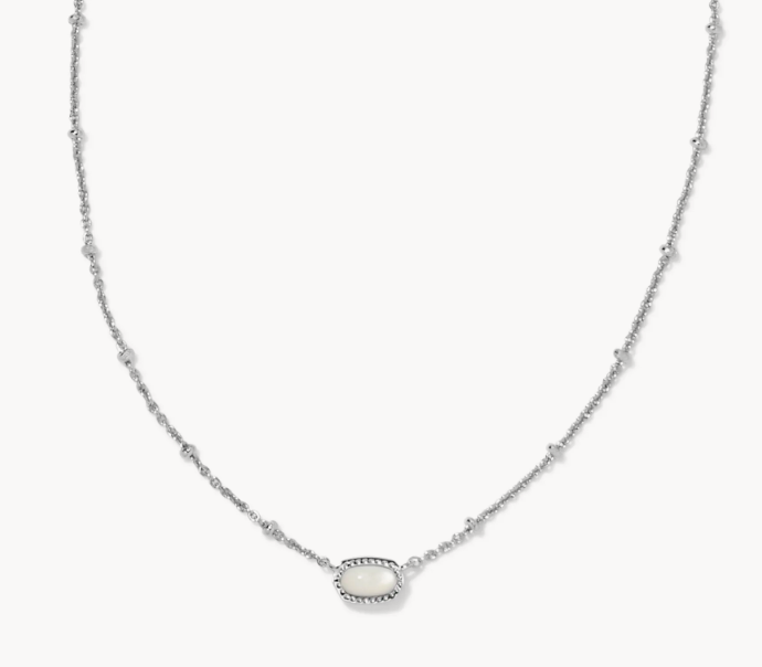 Our bestselling icon goes daintier (and cuter!) than ever in the Mini Elisa Silver Satellite Short Pendant Necklace in Ivory Mother-of-Pearl. Set on a textured satellite chain, this take on our signature shape is perfect for those with a more minimal aesthetic or anyone wanting to add some color to their layers.