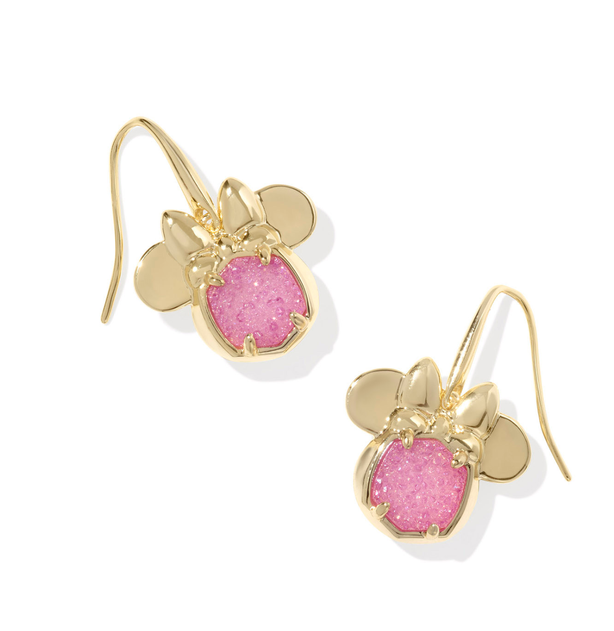 Expertly crafted by Kendra Scott, these Minnie Mouse drop earrings feature a bold hot pink drusy stone set in gold. Elevate any outfit with a touch of Disney magic and the versatile, eye-catching design.