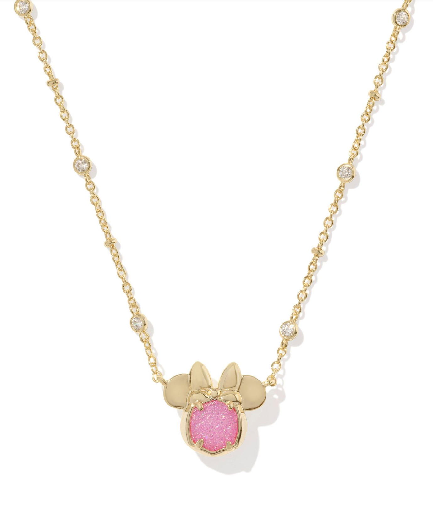 MINNIE MOUSE PENDANT NECKLACE GOLD HOT PINK DRUSY