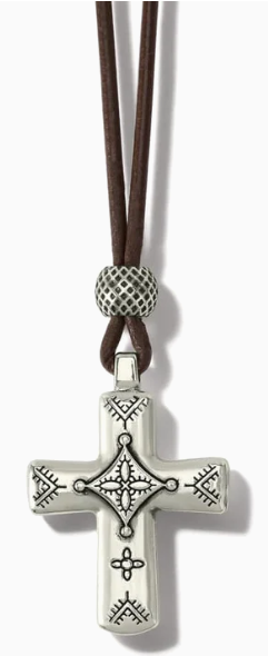 Inspired by the patterns seen in Mexican Talavera tile, this necklace features a traditional cross pendant that is reversible – etched with different motifs on each side.