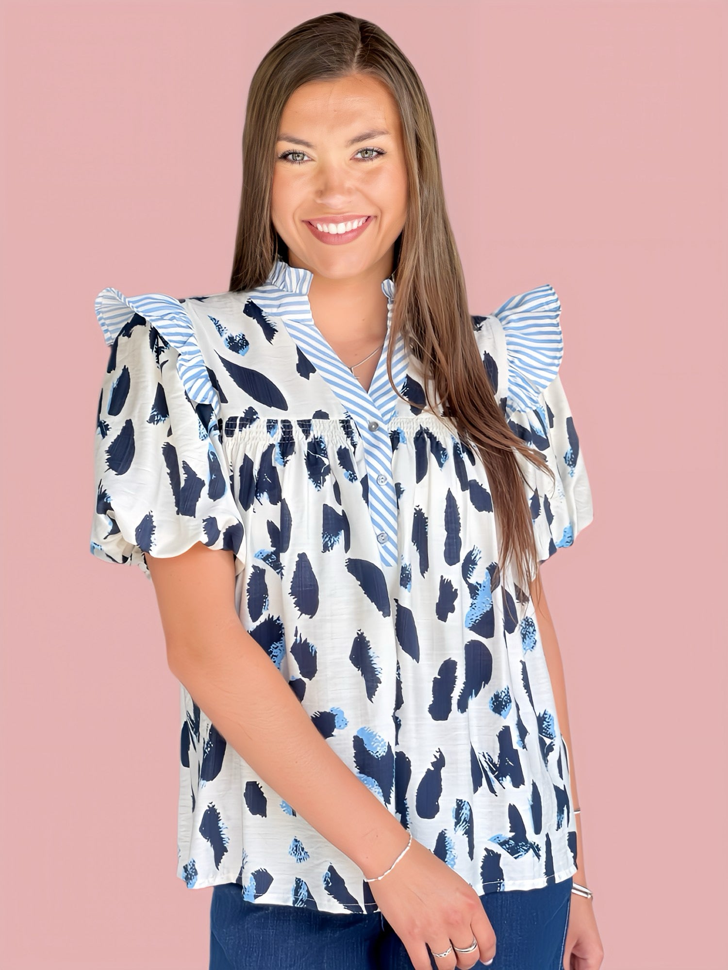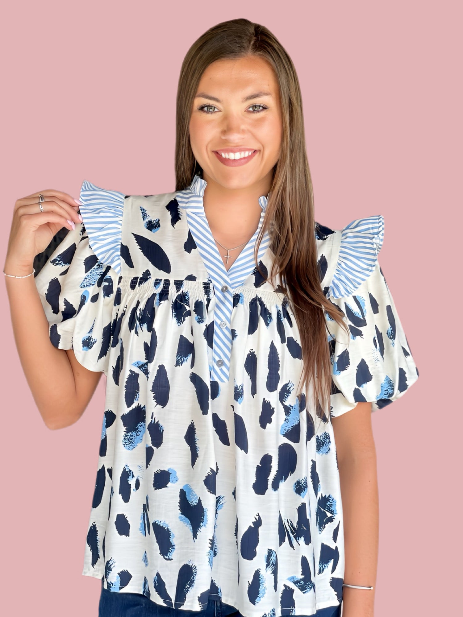 Add a touch of elegance to your wardrobe with our Ocean Breeze Ruffle Blouse. This stylish blouse features delicate ruffles and a beautiful blue color that will make a statement in any outfit. Made with high-quality materials, our blouse offers both style and comfort for any occasion.