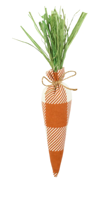 Orange and White Buffalo Check Fabric Carrot with Green Raffia.
