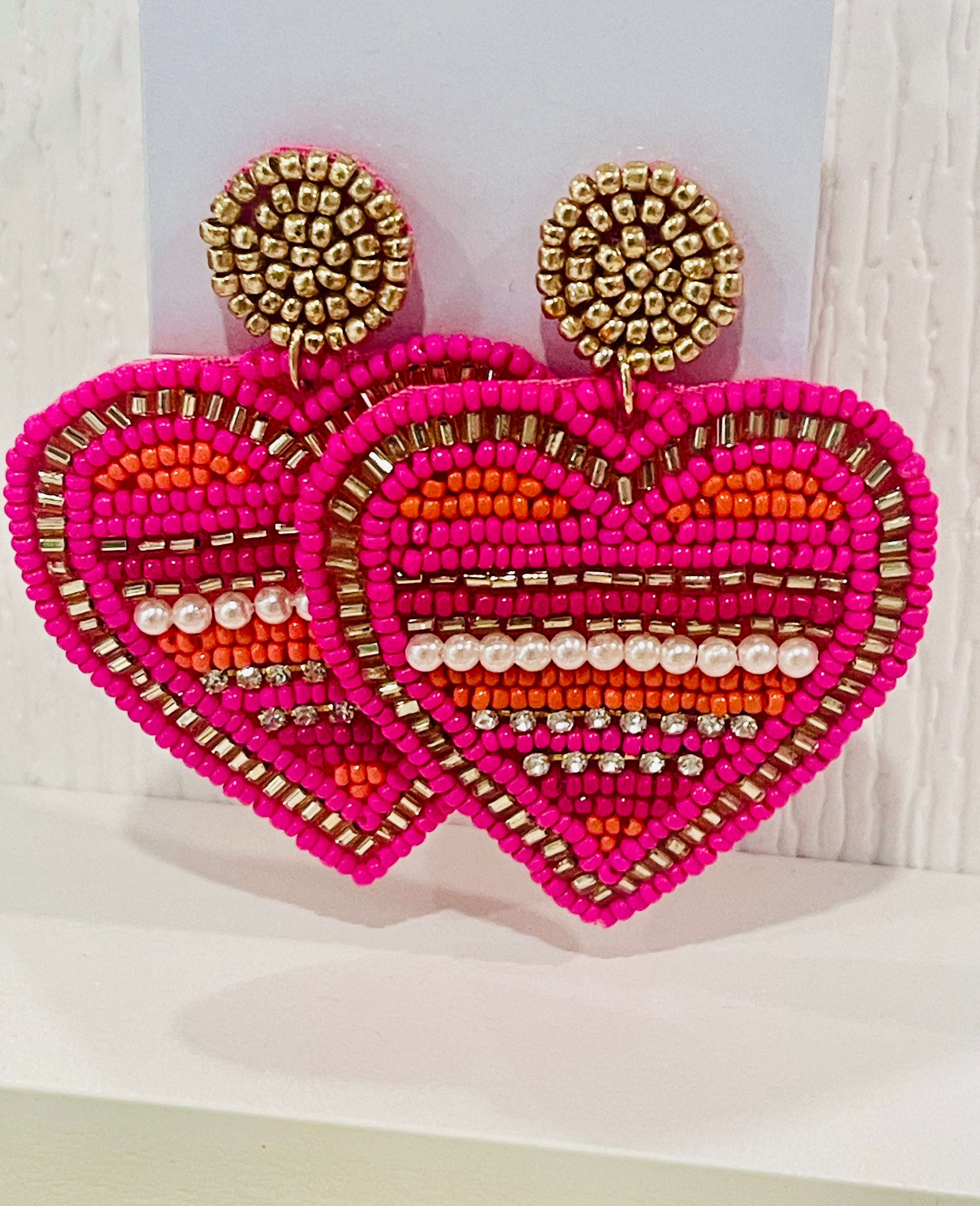 Elevate your Valentine's Day look with our Pink Beaded Heart Earrings. Hand-crafted with love, these earrings feature delicate pink beads molded into a heart shape. Make a statement of love and add a touch of elegance to your attire. Limited quantities available.