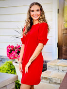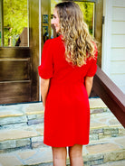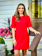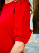 Introducing our Solid Coquette Style Dress, featuring a charming bow detail on the short puff sleeves. The round neck and invisible back zipper closure provide a comfortable and seamless fit, while the front bust darts add a touch of sophistication. Perfect for any occasion, this dress is a must-have for your wardrobe.