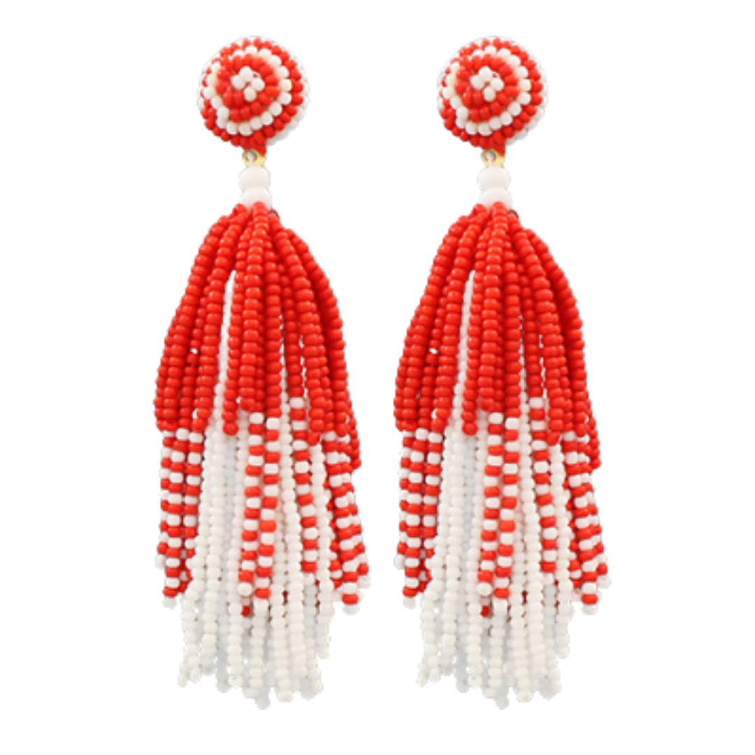 These beaded tassel earrings are gorgeous and have a two tone look. They are on a beaded post back and great for Game Day!