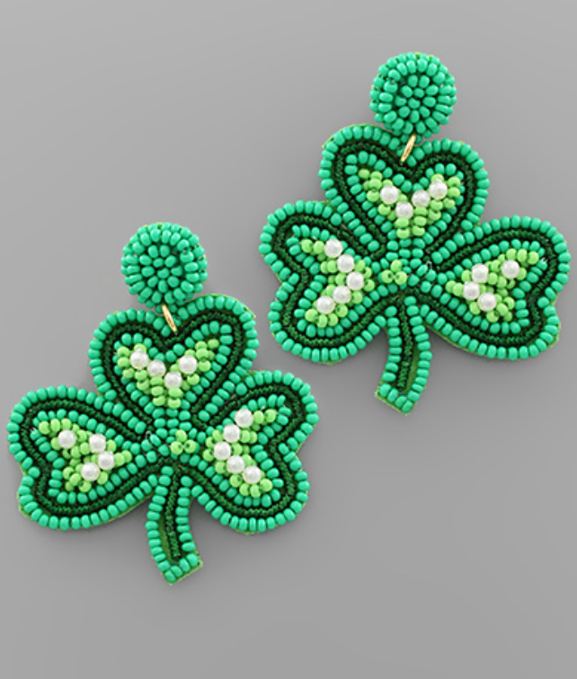 Expertly crafted with high-quality acrylic, these Shamrock Beaded Earrings are a must-have accessory. Featuring a secure post closure and measuring at 2 1/4"L, they offer both style and comfort. Elevate any outfit with these elegant earrings.