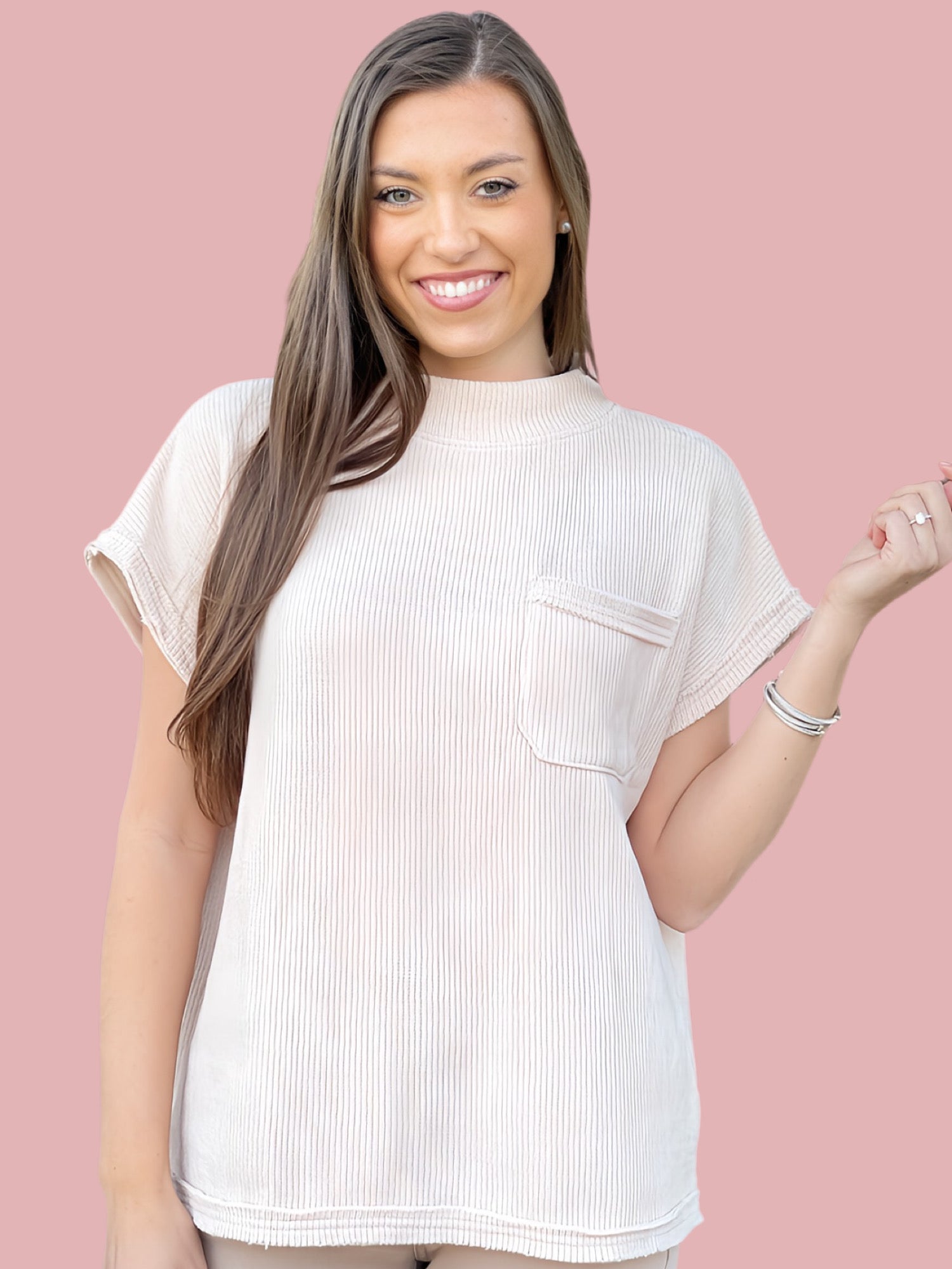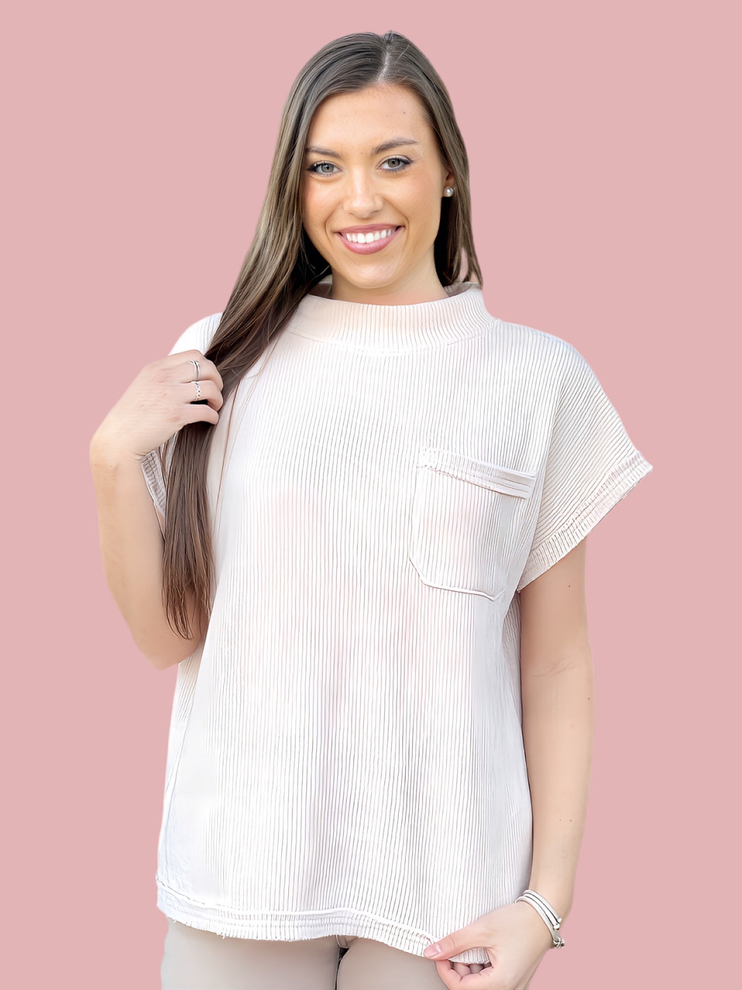 Expertly crafted from soft knit material, this mock neck top provides both comfort and style. Featuring a mock neckline and conveniently placed pockets, this top is perfect for any occasion. Experience the ultimate blend of functionality and fashion with our Soft Knit Mock Neck Top.