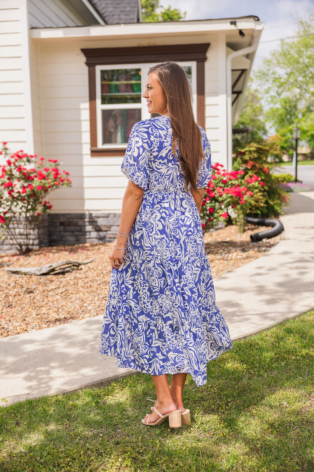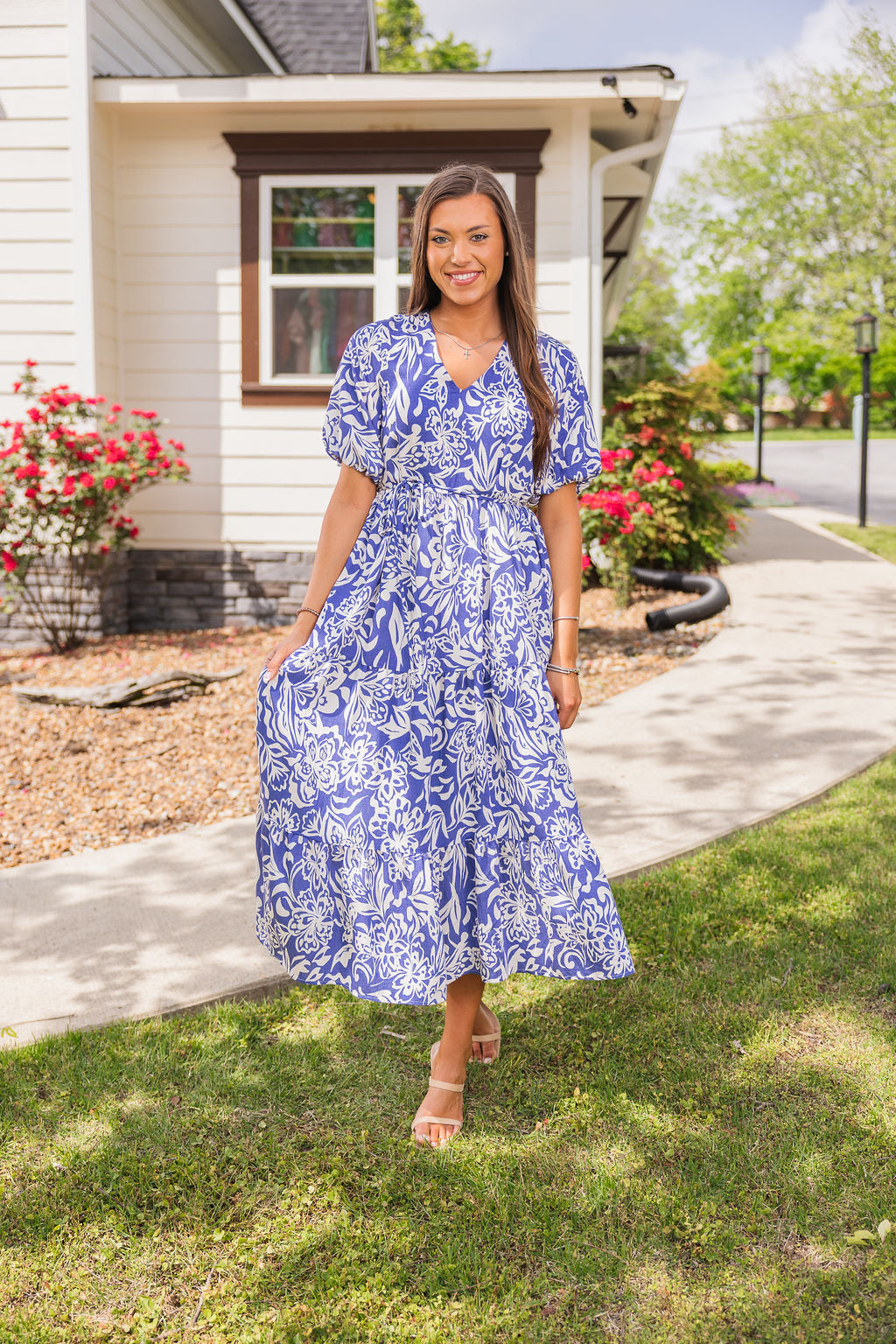 Discover elegance and grace with our abstract floral print midi dress. Featuring a flattering V-neck, delicate puffed sleeves, and a waist tie for a perfect fit. The tiered skirt adds a touch of sophistication while being fully lined for comfort. Elevate your wardrobe with this timeless piece.