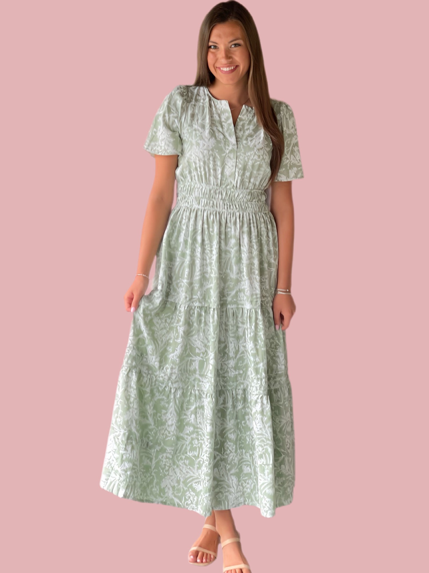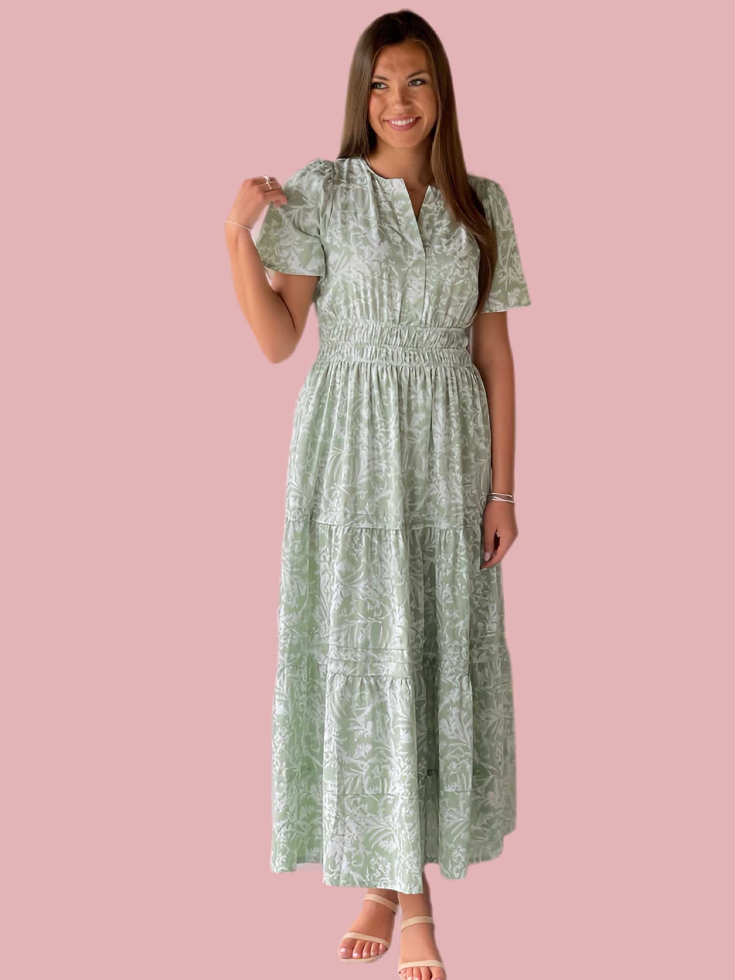 Expertly crafted from lightweight and breathable woven fabric, The Blossom Stroll Maxi showcases a vibrant floral print and elegant half sleeves. Its tiered pintuck design and waistband offer a flattering silhouette, while pockets add convenience. Stay stylish and comfortable with this must-have maxi.