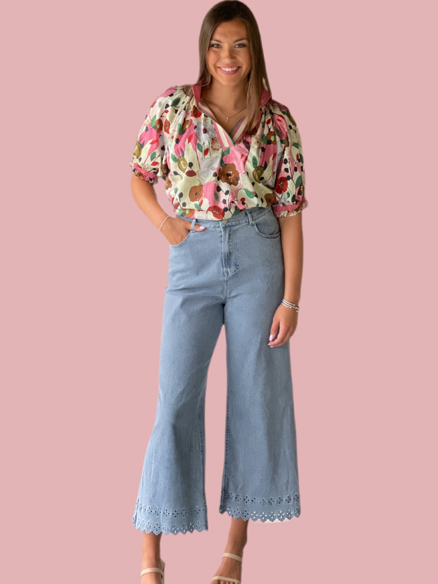 Expertly crafted with a floral print and split neck, The Garden Bloom Top exudes a sophisticated charm. Its puff sleeves add a touch of femininity, making it perfect for any occasion. Elevate your style with this top's refined design and effortless elegance.