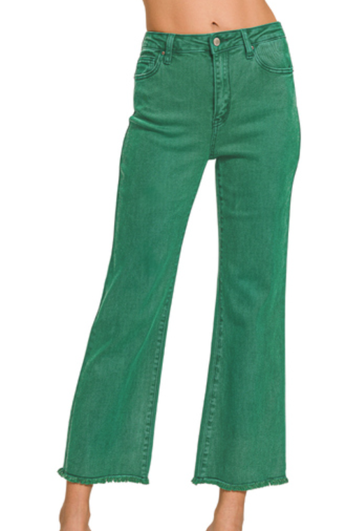 These acid-washed, high-waist bootcut pants combine vintage style with modern comfort. Featuring a flattering frayed hem and crafted with fabric that offers excellent stretch, they provide a snug fit while allowing ease of movement. Perfect for adding a trendy edge to your wardrobe with a silhouette that enhances your shape.