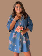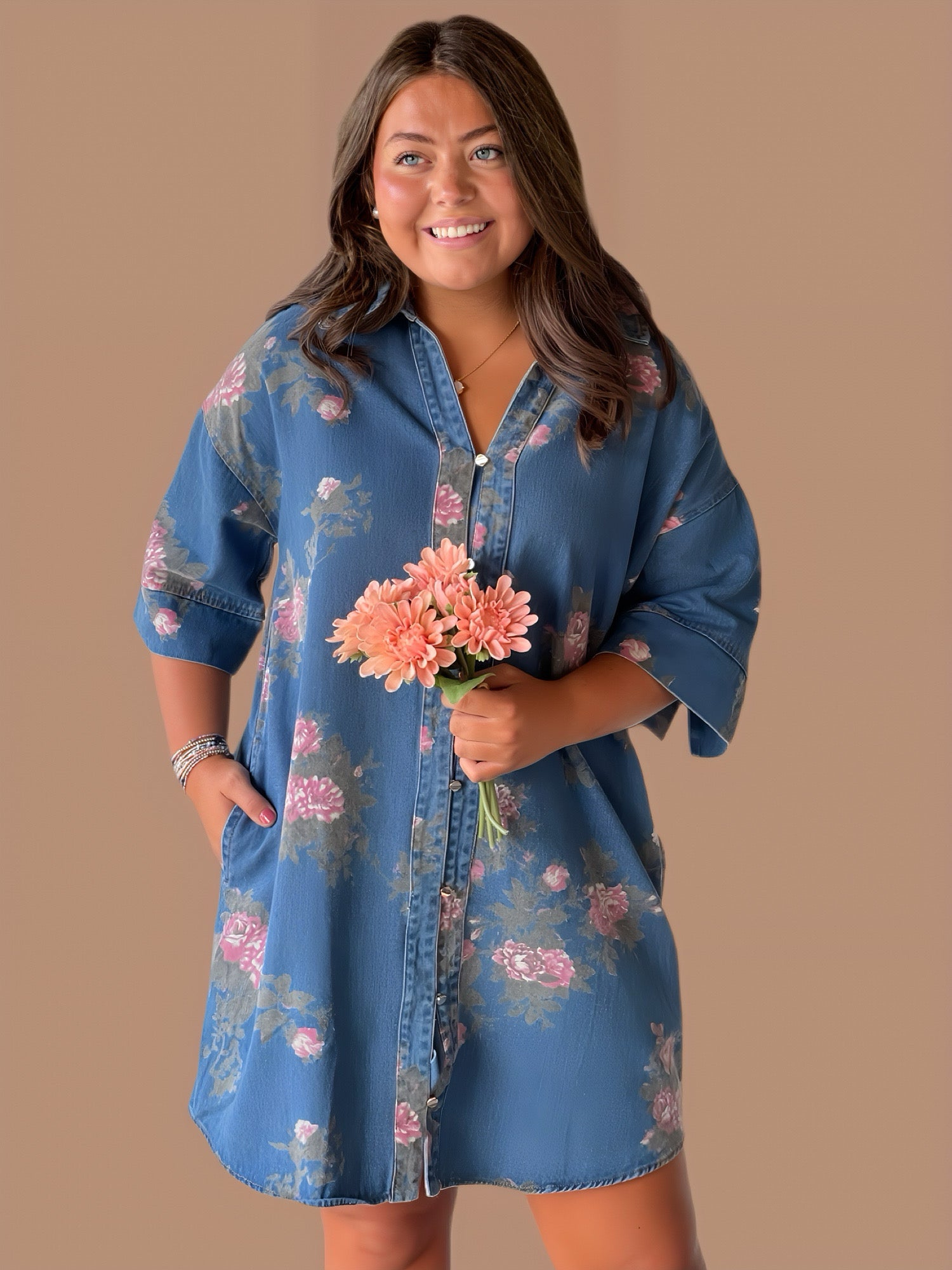 This expertly designed shirt dress showcases a subtle floral print and elbow-length sleeves for a polished look. Made from lightweight, woven fabric that is non-sheer and unlined, it ensures comfort and breathability. Practical side pockets add functionality, making this dress a versatile and sophisticated choice for various occasions.