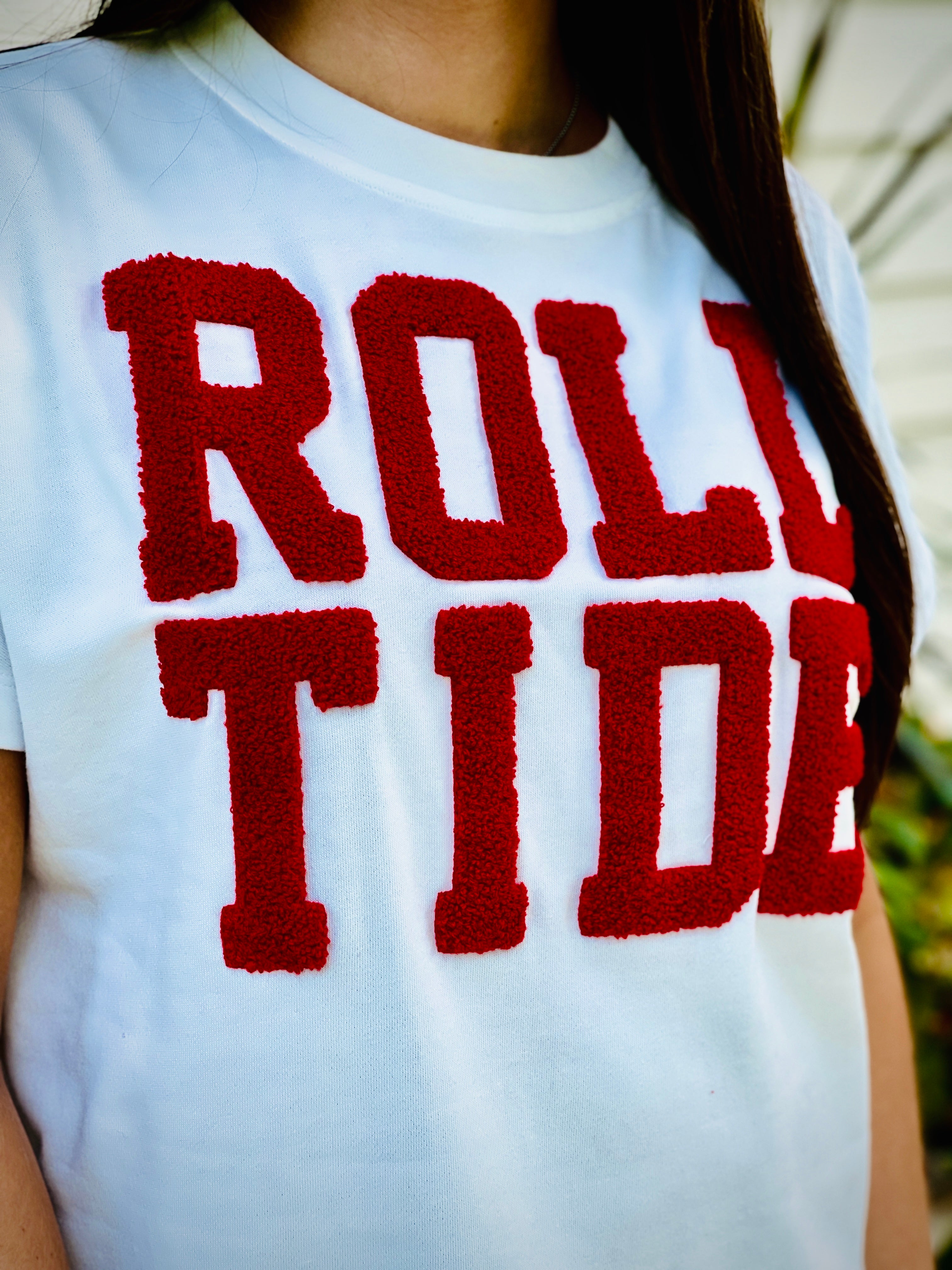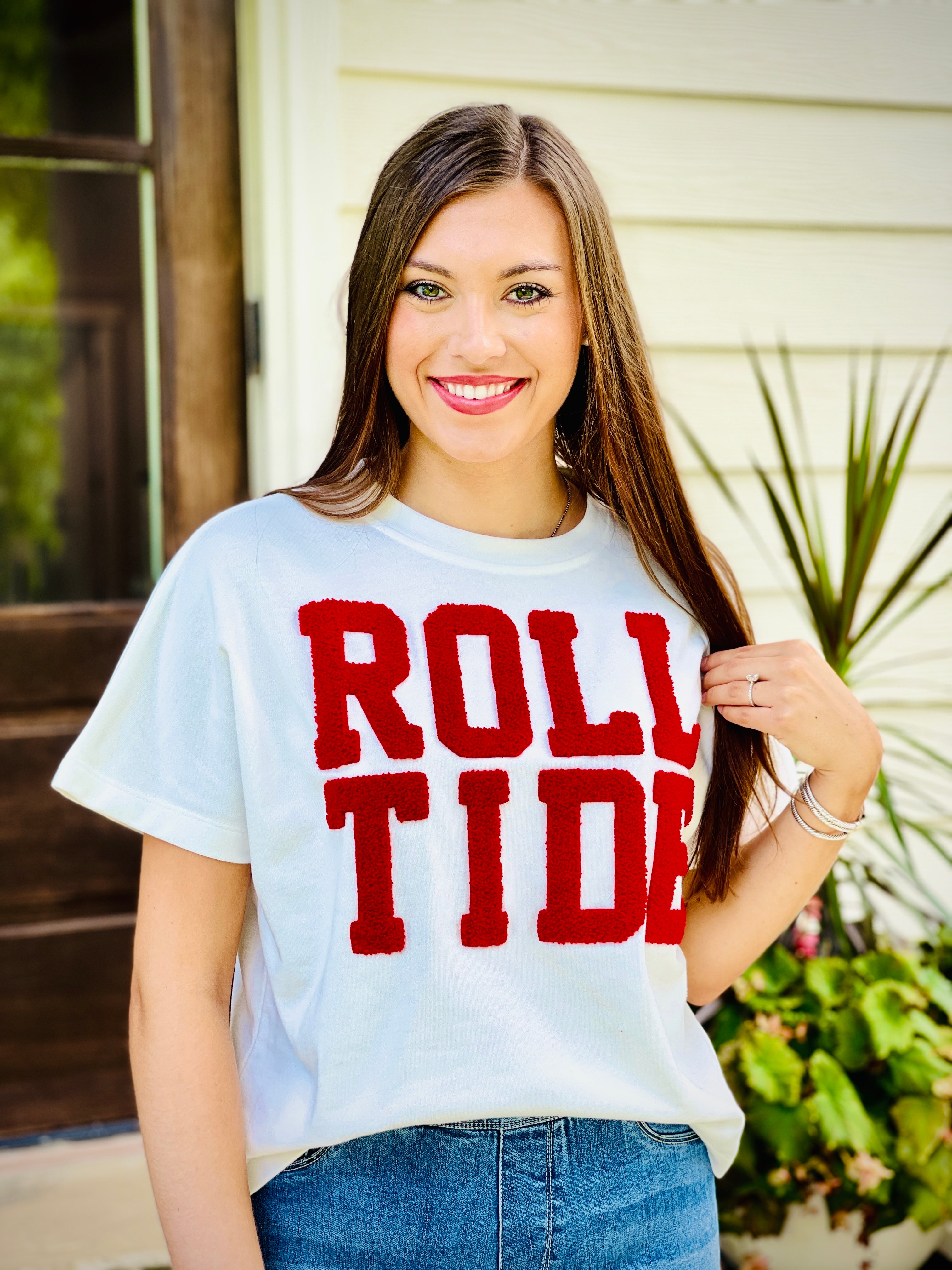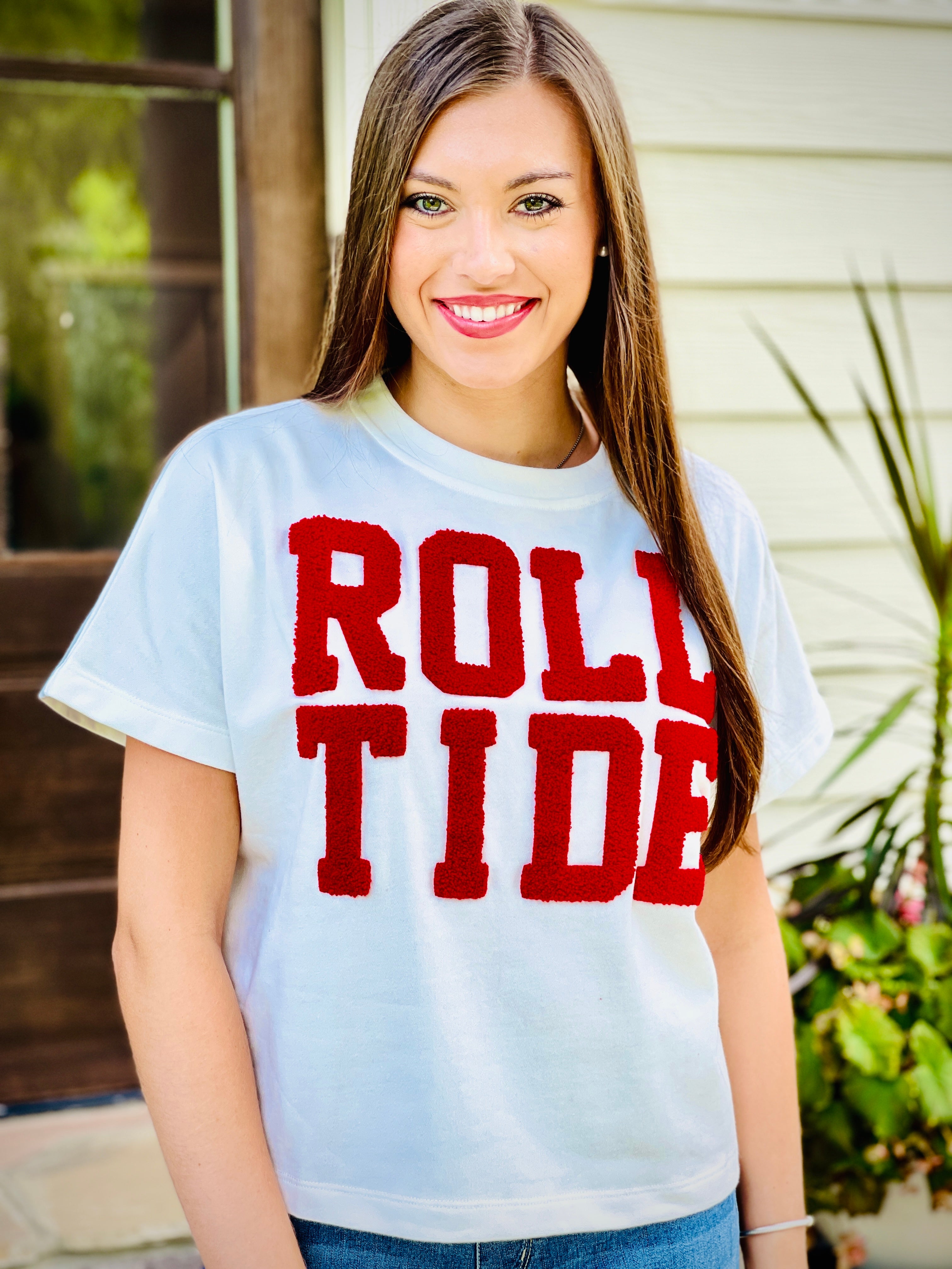 Made of lightweight French terry material and oversized chenille lettering, this top will be your new game day go-to. Pair with your favorite jeans, shorts, or skirt. This top is officially licensed so a portion of your purchase directly supports the university.