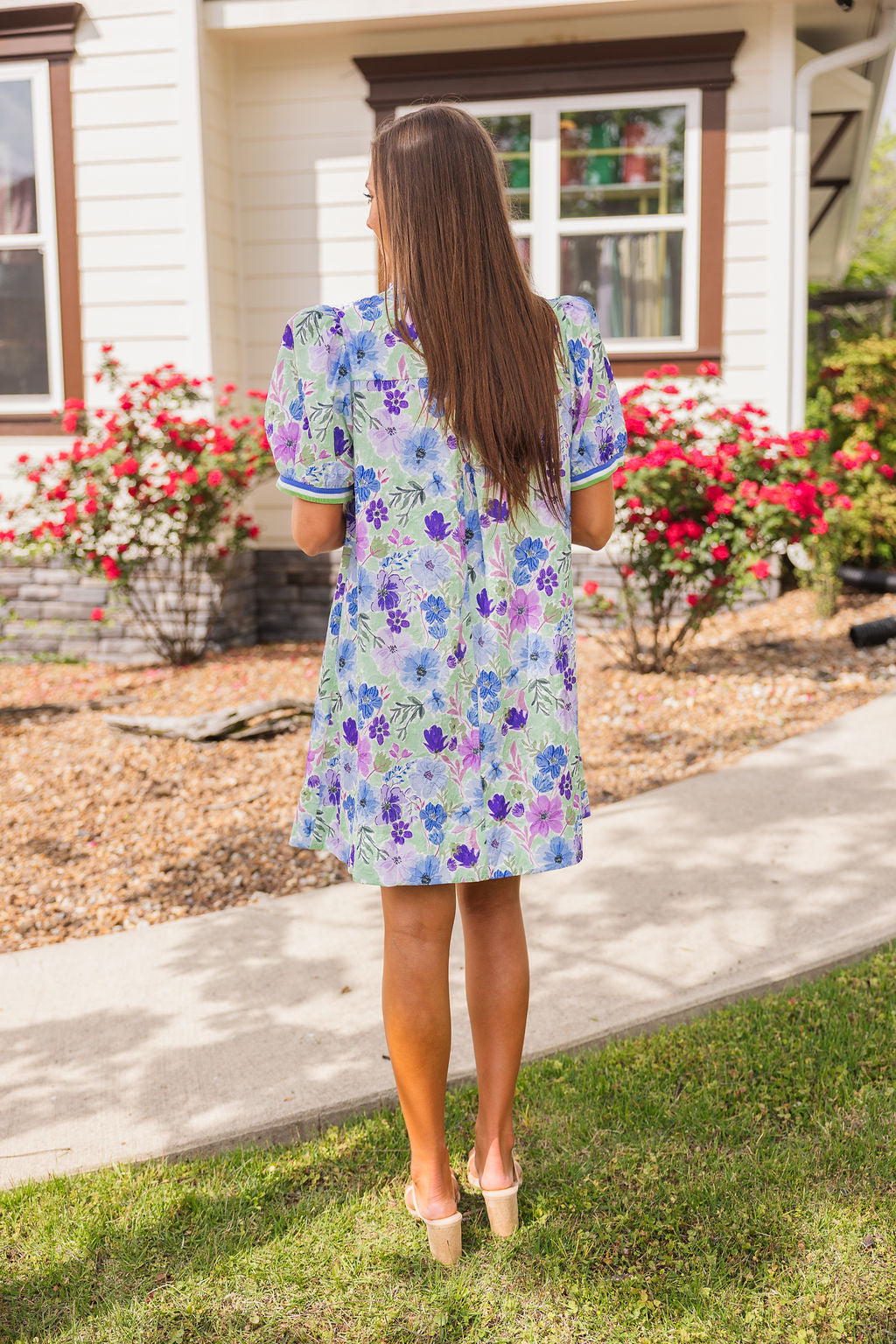 Expertly crafted with delicate floral patterning in a refreshing blue mint hue, this dress exudes a timeless elegance. Its versatile design is perfect for any occasion, making it a wardrobe essential for any style-savvy individual. Elevate your look with this stunning piece.