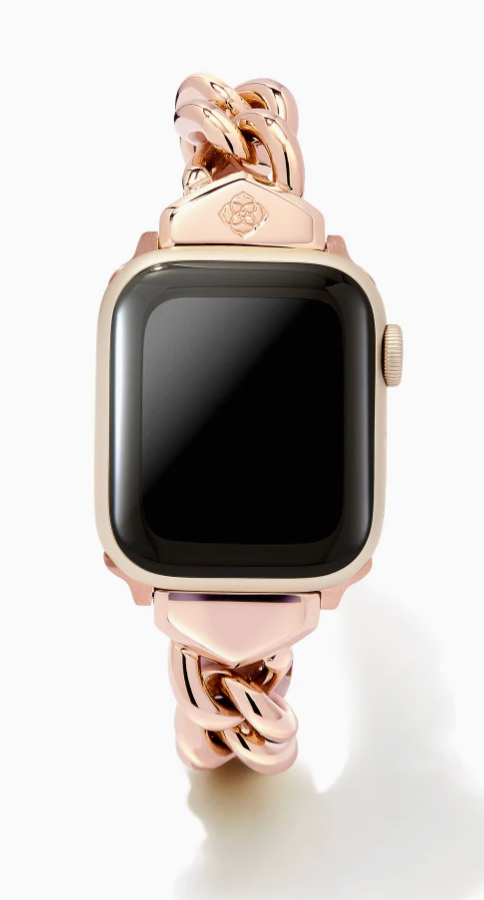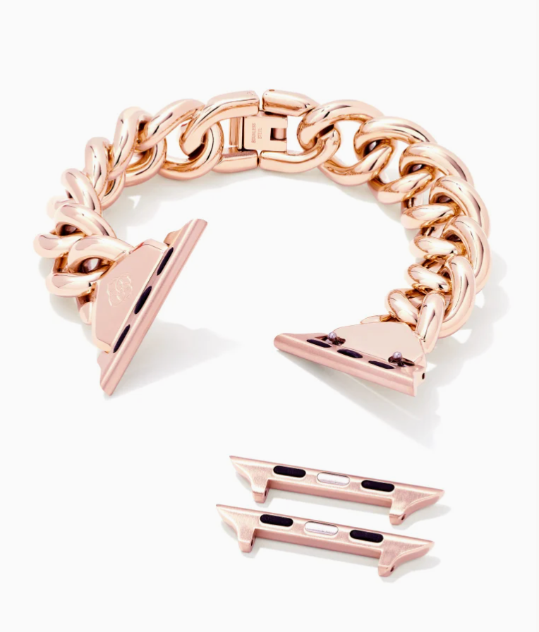 Designed exclusively for your Apple Watch®, the Whitley Chain Watch Band in Rose Gold Tone Stainless Steel transforms your smartwatch into a sleek statement that shines on its own or with your favorite bracelet stack. To switch up your bands, simply press down on the easy release mechanism and then align each new band to the pinholes on either side of the watch.