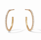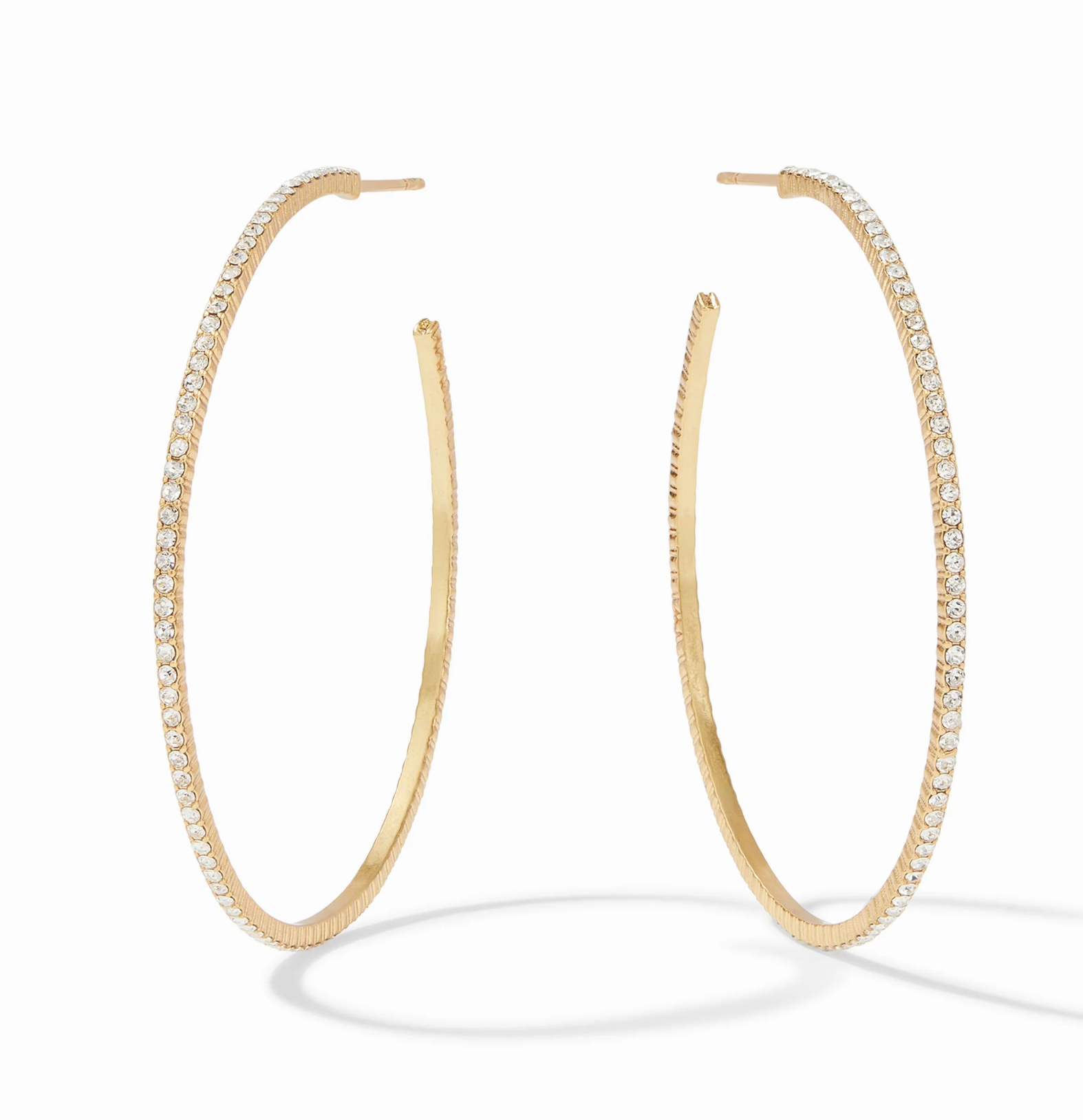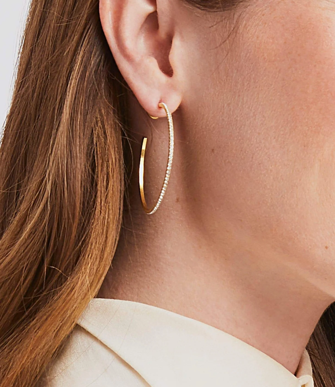 Sparkle and shine in a pair of striking CZ hoop earrings adorned with pavé CZ. These slender, thin hoops are available in four different sizes.