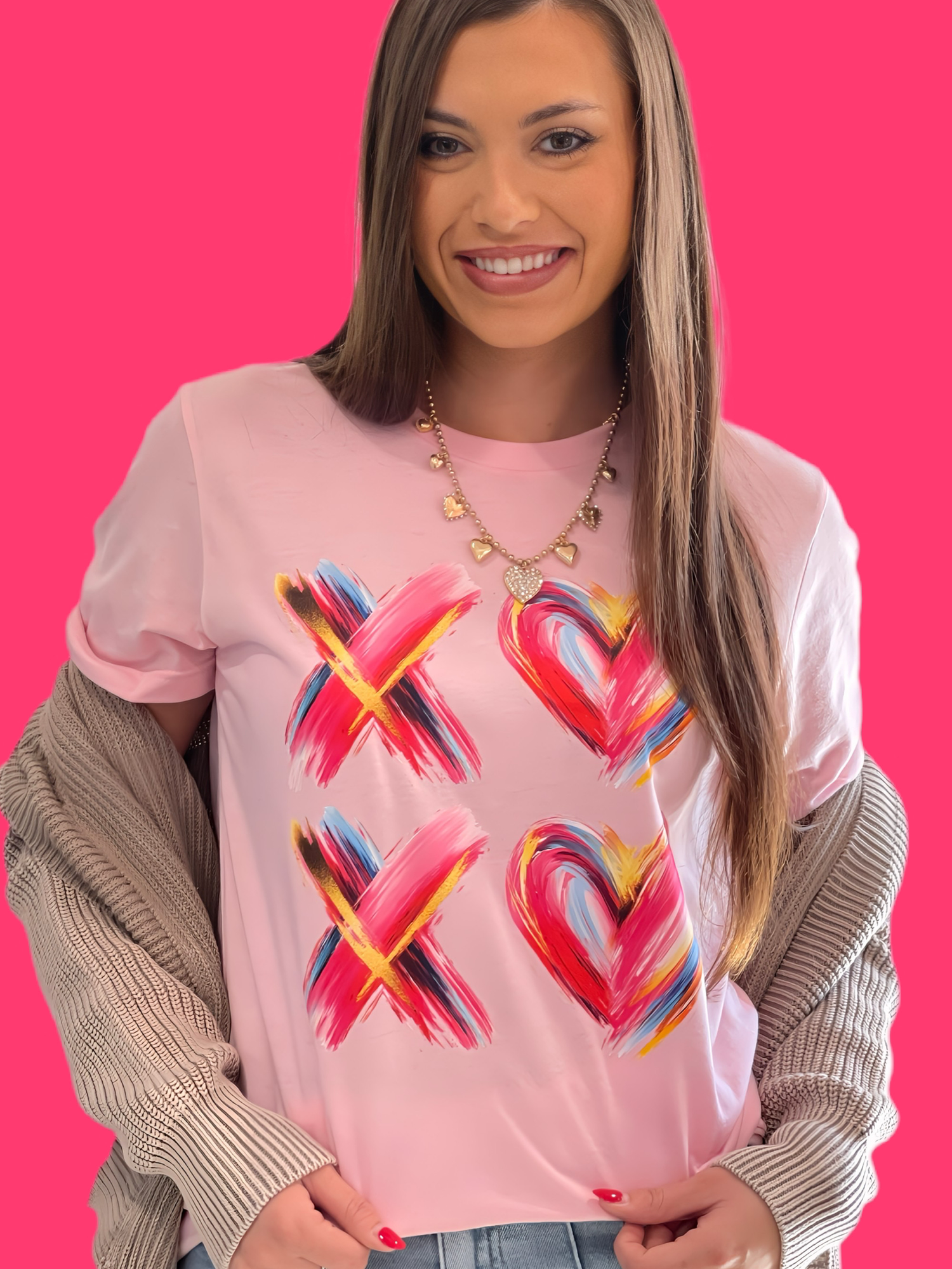 Introducing the XOXO Brushstroke T-shirt, the perfect gift for Valentine's Day. This stylish shirt features a bold brushstroke design and the iconic XOXO symbol, making it the ideal way to show your love and affection. Made with high-quality materials, this shirt is sure to impress. Don't miss out on this limited edition Valentine's Day offering.
