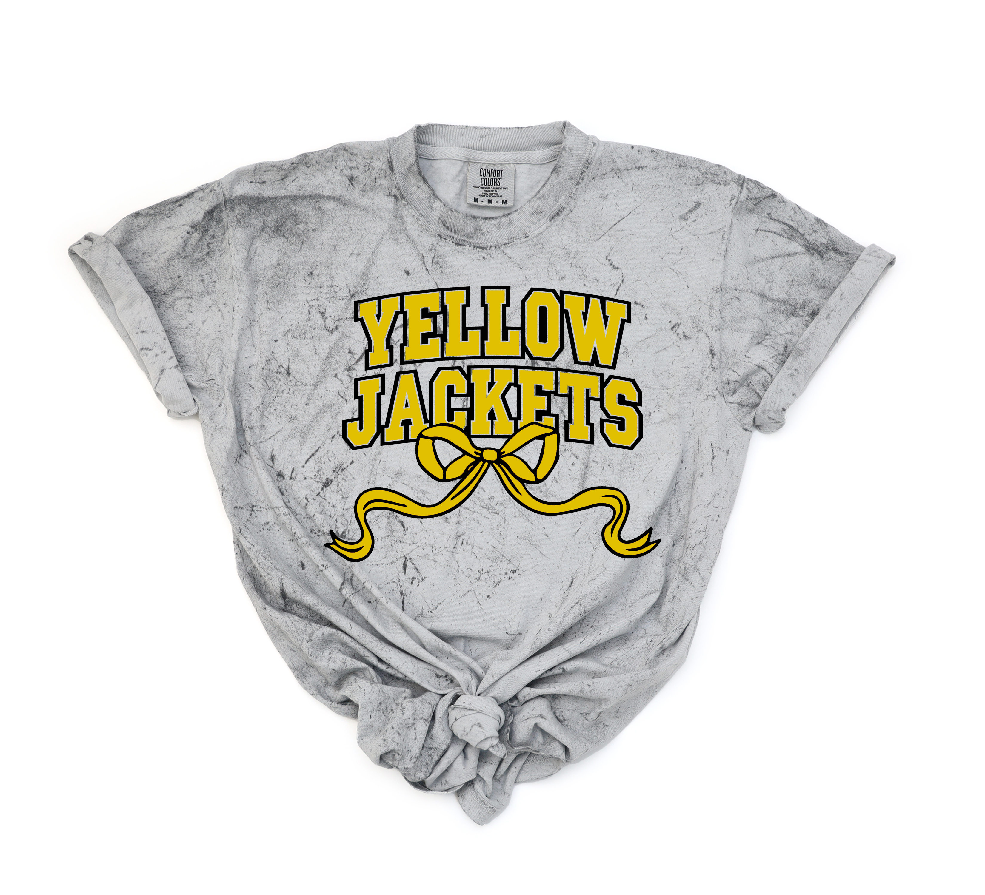 Stay stylish and comfortable during game day with the Yellow Jacket Coquette Tee. Crafted with a yellow jacket pattern, this tee is sure to make a statement. Made from quality fabric, it provides a soft and breathable fit for all-day wear. Show your team spirit and look your best with this game day essential.